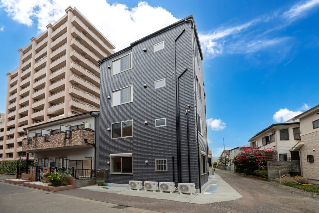Kフレームは、構造の自由度が高くコストを大きく抑えられる特殊工法です。 4階建てを実現する際にはRC造や重量鉄骨造も選択肢となりますが、収益性とコスト効率の両立を実現するKフレーム工法を採用しました。