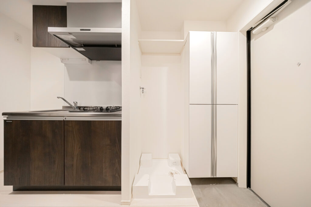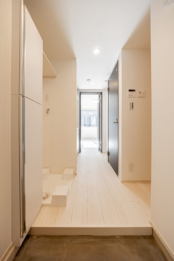 廊下を設けないことで共用部を最小限にし、住戸スペースを効率的に確保できるプランニングにしました。