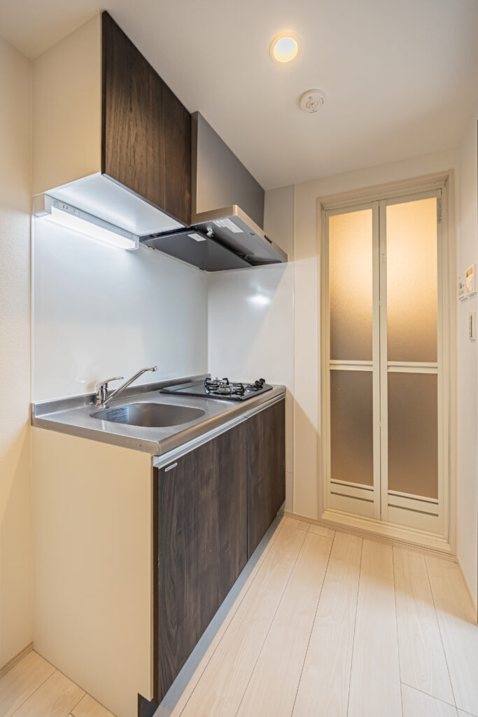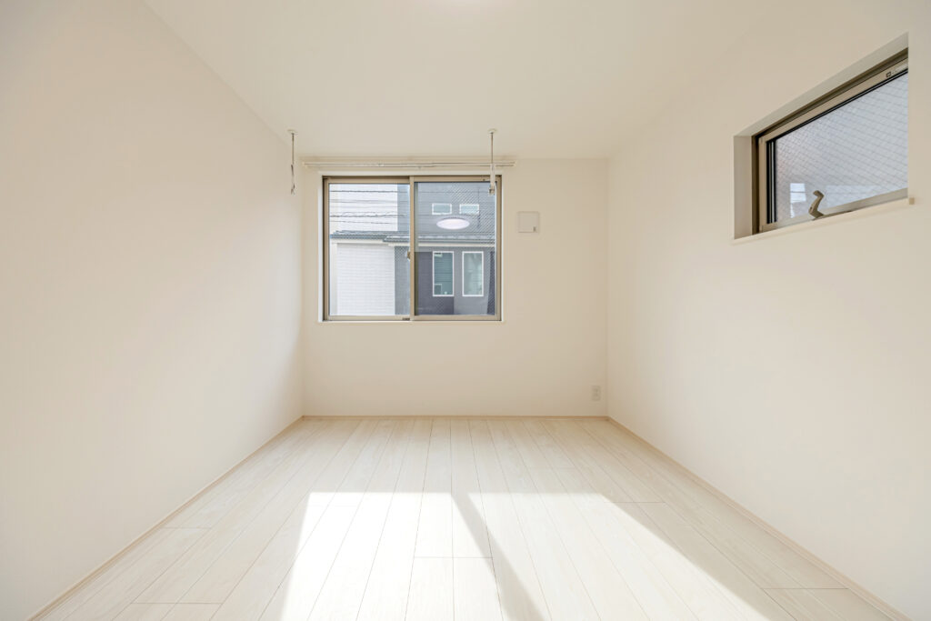 内装は、白を基調とした明るい空間に木目調の建具やキッチンを組み合わせた、シンプルで落ち着きのあるデザインに仕上げています。